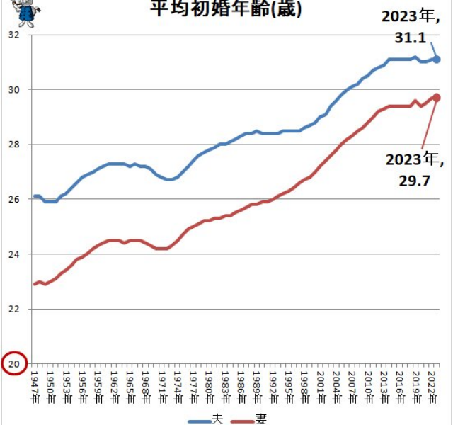 日本の男性の平均初婚年齢は31.1歳となっています。